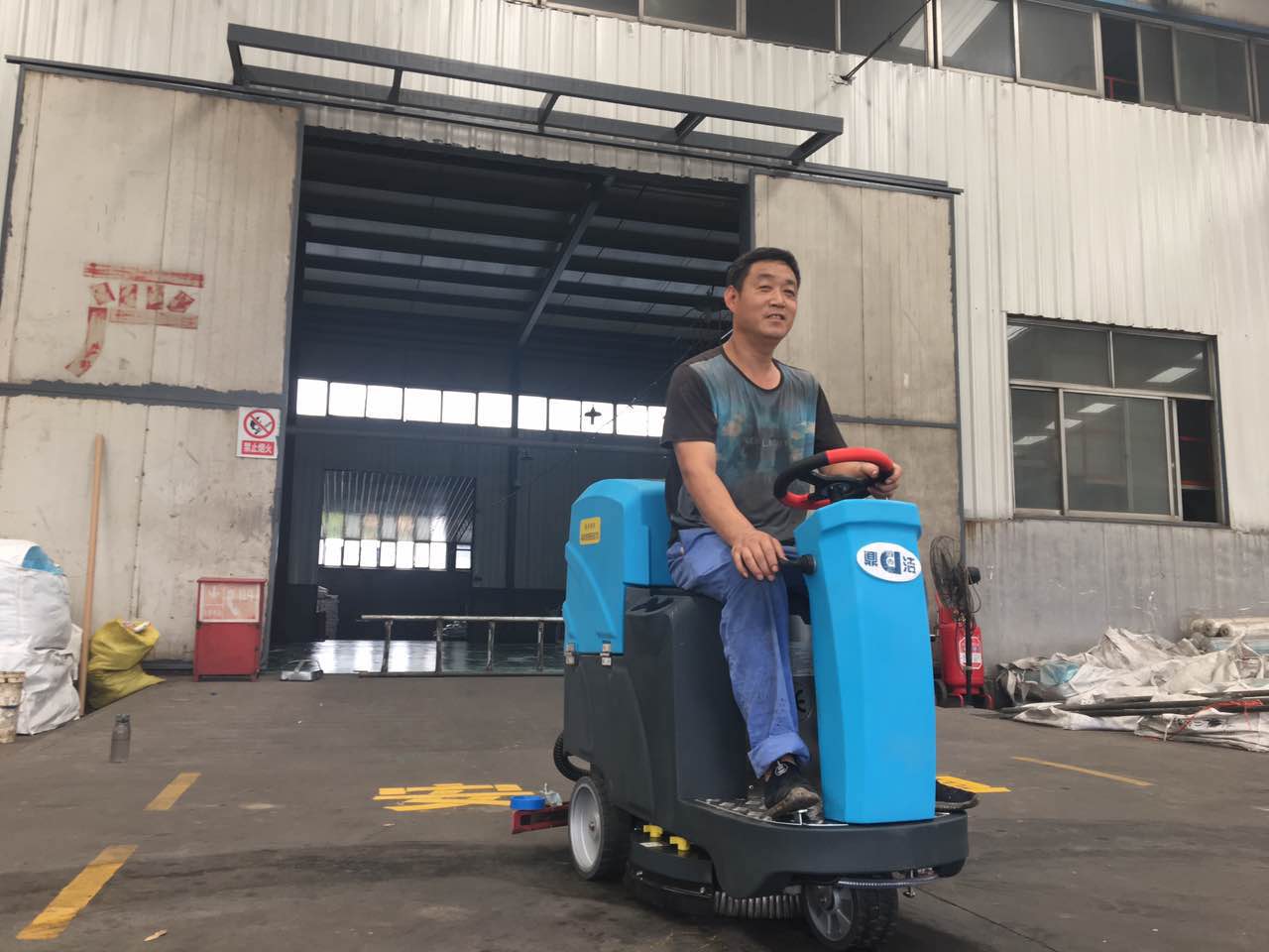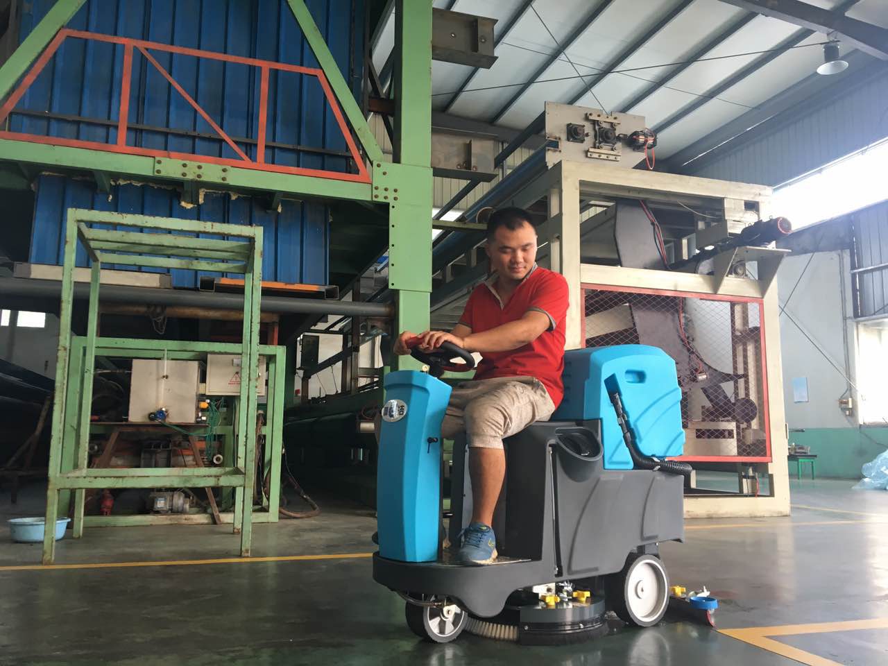 淄博臨淄一大型金屬機械加工企業(yè)針對車間面積大,清潔任務重的現(xiàn)狀,選擇了兩臺鼎潔清潔設備公司的駕駛式洗地機,這種洗地車比普通的手推式洗地機效率高,而且開著更省力方便。更重要的是面對繁重的保潔工作,工人們再也不用加班加點兒打掃衛(wèi)生了??垂と伺笥验_著洗地車做保潔,多神氣。