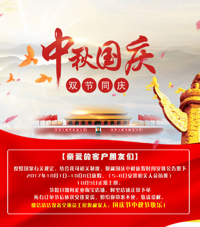 鼎潔清潔設(shè)備國慶中秋放假公告