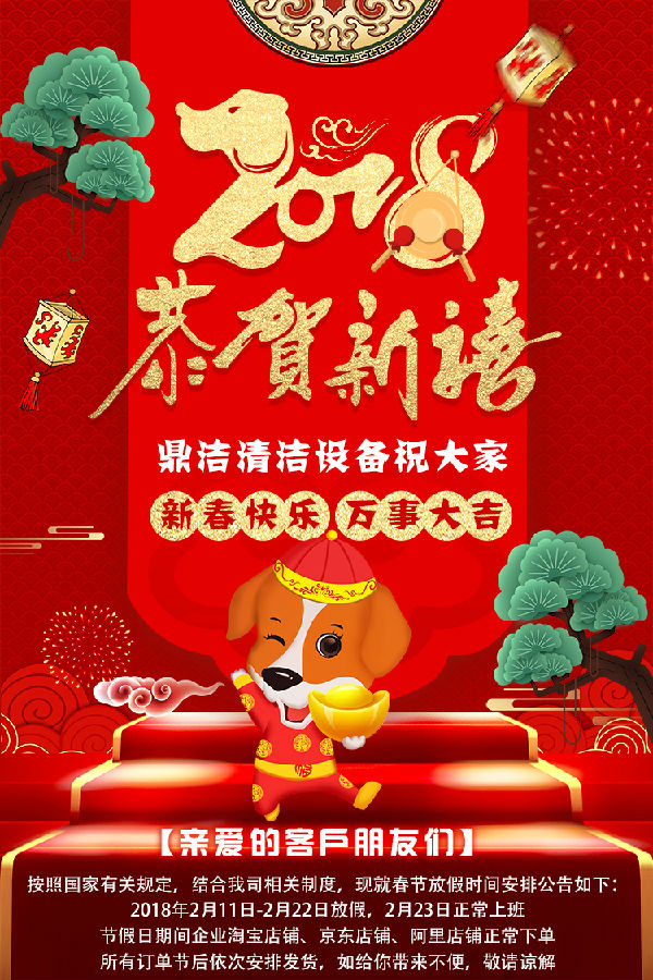 鼎潔清潔設(shè)備2018春節(jié)放假公告