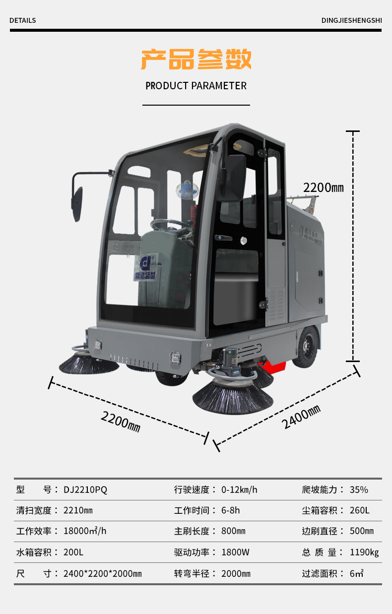 鼎潔盛世電動(dòng)駕駛式掃地車(chē)DJ2210PQ