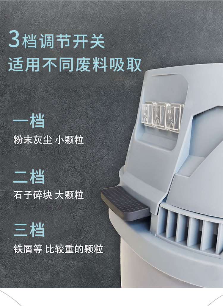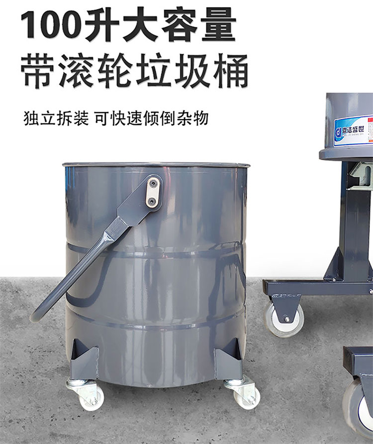 適用場所:工業(yè)專用吸塵器大功率吸力強、干濕兩用、反吹除塵。一站式解決工業(yè)清潔問題,可吸入多種廢料,自帶100升大容量帶滾輪垃圾桶,可獨立拆裝,可快速傾倒雜物。
