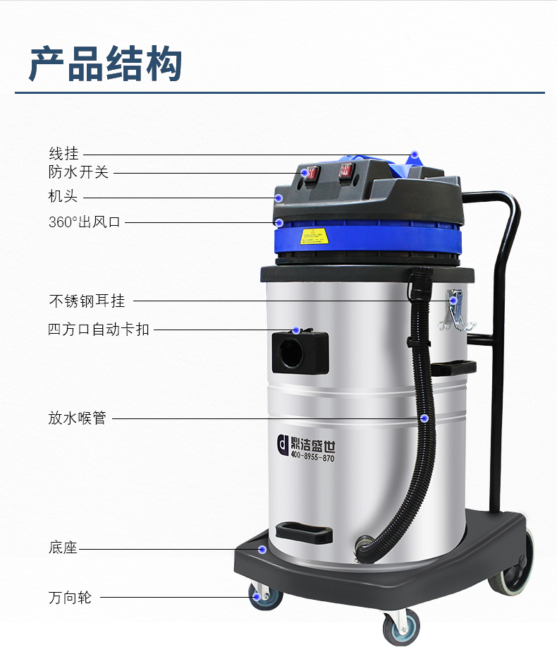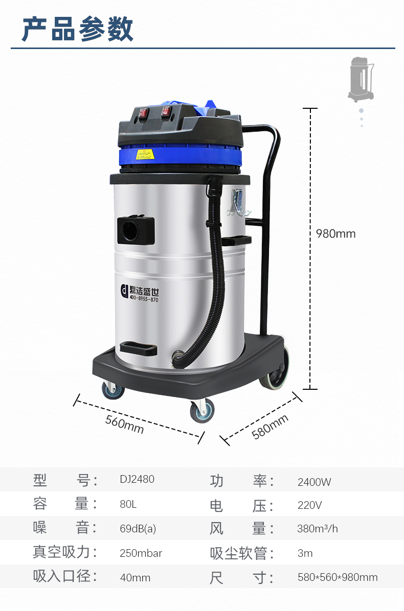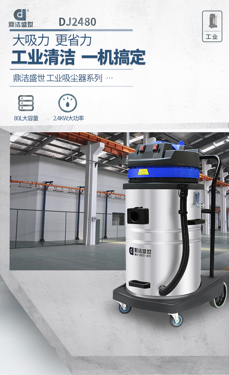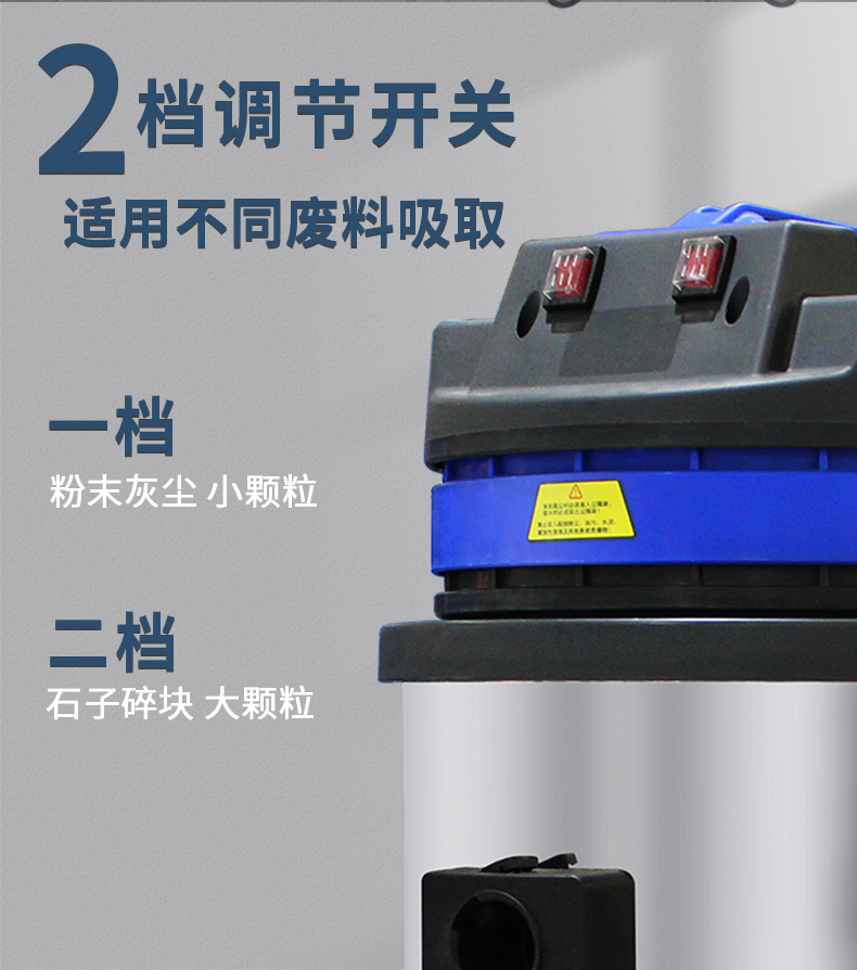 適用場(chǎng)所:DJ2480工業(yè)吸塵器2400w大吸力,一站式解決各種清潔難題,可吸入多種廢料,有2檔調(diào)節(jié)開(kāi)關(guān)適用不同廢料吸取,1檔粉末灰塵小顆粒,2檔石子碎塊大顆粒。