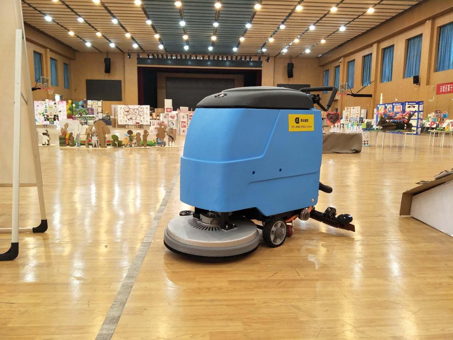 濟南大型活動場館選擇使用鼎潔盛世DJ520手推式洗地機清潔地板,拖地洗地吸干三合一,省時省力,清潔效果更佳。