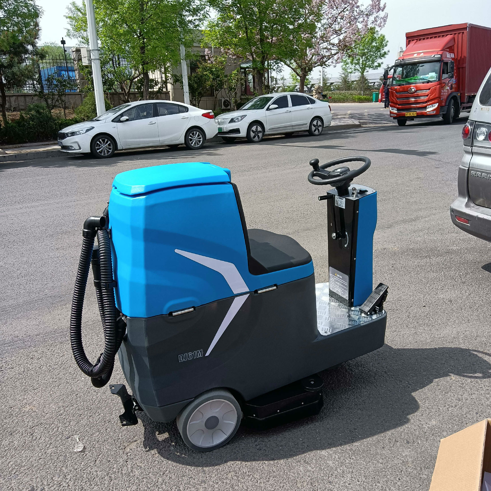 DJ61M駕駛洗地車是一款噴灑,洗刷,及污水回收為一體的清潔設備能將地面做到既洗既干的清潔效果。前置毛刷或百潔墊,清洗地面的灰塵、油漬、污漬等;配備原裝進口洗地馬達和吸水馬達,配合無痕橡膠輪胎和導向輪,清洗無殘留。刷盤加重了鋁鑄件刷盤,清洗更徹底。