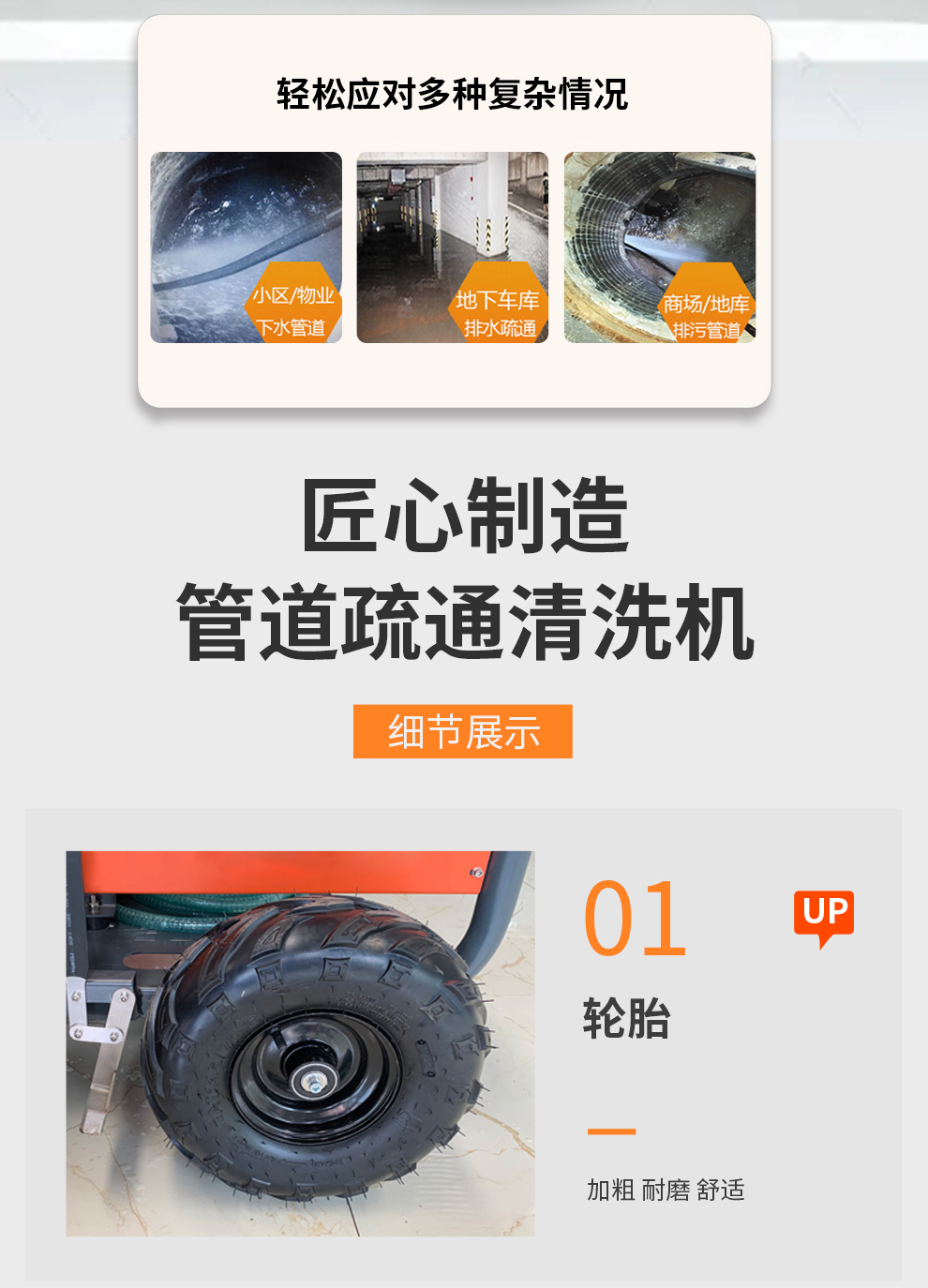 適用場所:適用場所:市政下水管道疏通,小區(qū)物業(yè)管道疏通,油田煉油廠油管疏通,化工原料管道疏通,工廠換風(fēng)管道疏通,以及生活管道疏通等